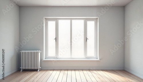 Fototapeta premium Minimalistic Illustration of a Window in a Lonely Room, Bright and Contemplative