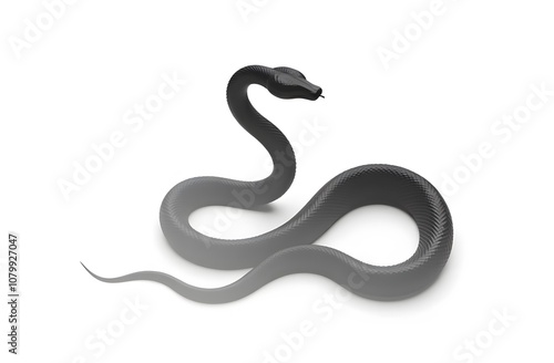 Fototapeta premium Minimalistic image of a black snake silhouette coiled a white background,...