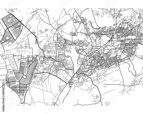 © fazila, Naklejka premium Minimalistic Map of Peshawar, Retro Style, black and White