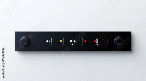 Obraz premium Minimalistic music player bar sticker with play, pause, and next buttons, isolated on white background