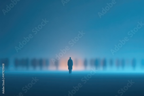 Obraz premium minimalistic photo with distinct focus on lone figure symbolizing climate policy while all background individuals are
