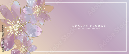 Naklejka premium Minimalistic pink floral background with watercolor flowers. Background for...