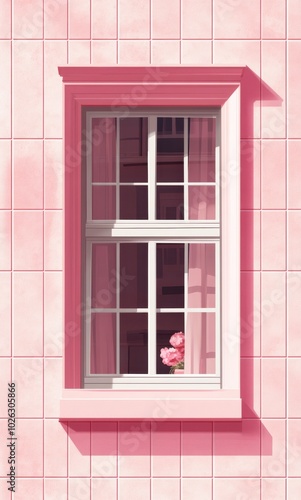 Fototapeta premium Minimalistic pink pastel window with curtains and flowers, highlighting simple elegance and a soft, calm atmosphere