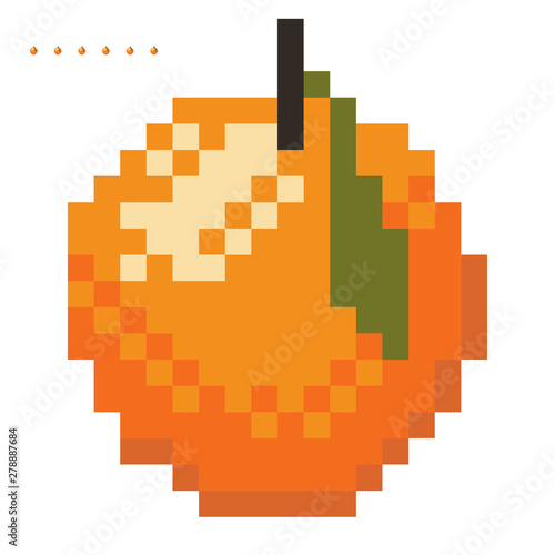 Obraz premium Minimalistic pixel graphic symbol of Orange Citrus. Art vector object isolated. Game 8 bit style.