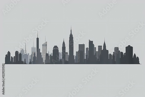 © Carlos Sanchez Pereyra/imageBROKER, Naklejka premium Minimalistic silhouette of a city skyline with a monochromatic gradient background, illustration, AI generated