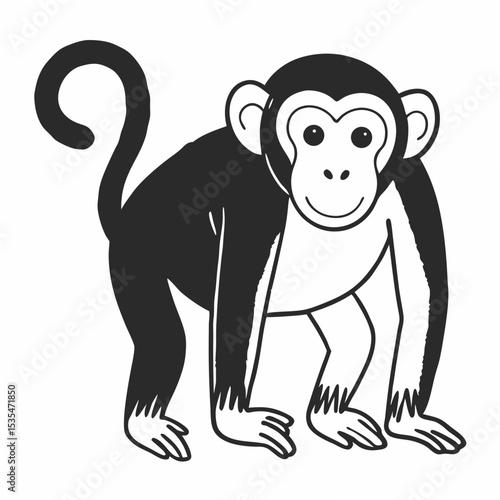 Fototapeta premium Minimalistic simple flat view of a black and white pictogram of a monkey.