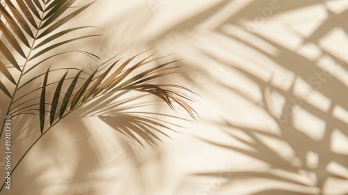 Obraz premium Minimalistic summer background with blurred sunlight shadow of palm leaves on neutral beige backdrop