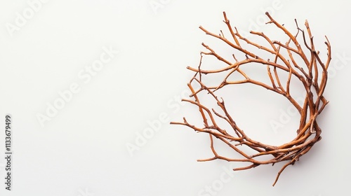 © Alpha, Naklejka premium Minimalistic tumbleweed floating on bright white background, high-resolution details in branches, perfectly centered for product marketing use