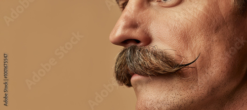 © spyrakot, Obraz premium Minimalistic Website Hero Image Featuring Man with Styled Mustache for Text or Product Promotion