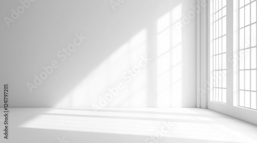 © Ruslan, Obraz premium Minimalistic white background with geometric light effects
