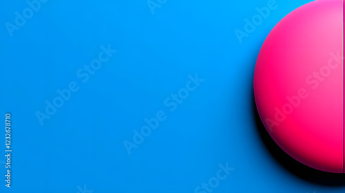 Obraz premium Minimalistische geometrische Komposition mit pinker Kugel auf blauem Hintergrund