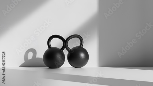 Naklejka premium Minimalistyczna kompozycja czarnych kettlebelli w świetle i cieniu.