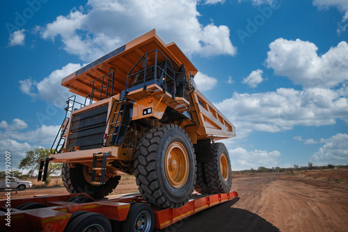 © poco_bw, Fototapeta premium Mining Logistics Infrastructure Representing Heavy Industrial Engineering Abnormal Load Transport