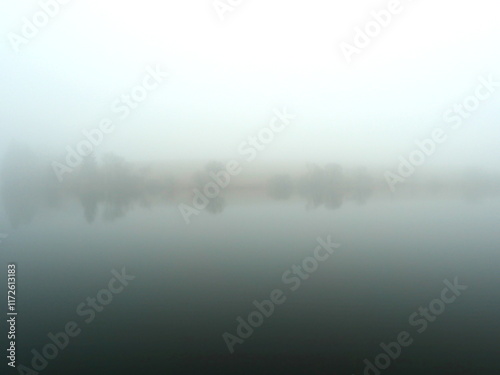 © Frank, Fototapeta premium Mining pond in the Harz in the fog. A mystical mining pond in the Harz. Fog, reflections, and horizons in winter create an enigmatic atmosphere, perfect for diverse themes.