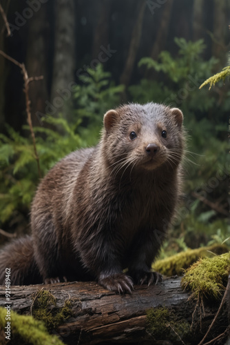 © DavidMohn, Obraz premium Mink in Lush Forest