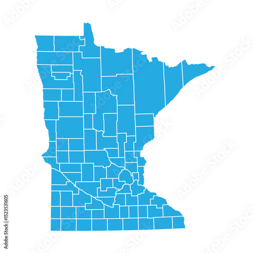 Fototapeta premium Minnesota Blue Administrative Map Vector