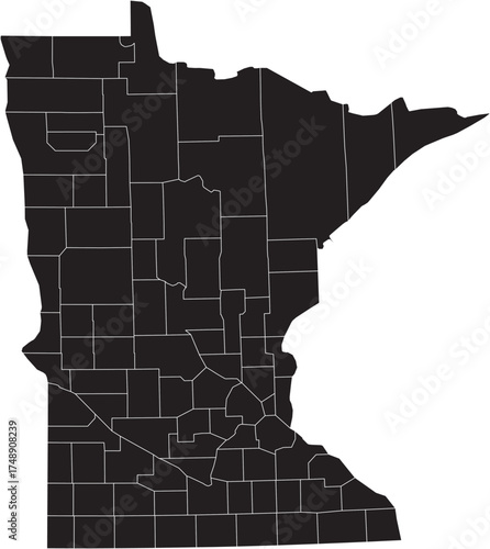Fototapeta premium Minnesota State Map Silhouette With County Lines