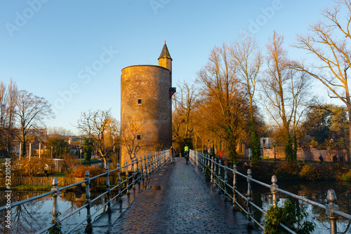 © fukez84, Fototapeta premium Minnewater lake , Minnewaterbrug . Beautiful lake and garden in old town of Brugge during autumn , winter : Brugge , Belgium : November 30 , 2019