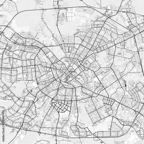 © Knut Hebstreit, Fototapeta premium Minsk Area Map with Labels and Neighborhoods - One color, minimalistic design