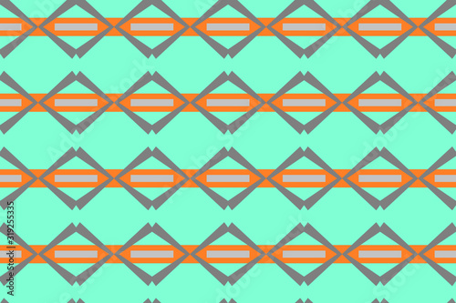 © Konstantin, Fototapeta premium Mint background pattern from the rhomb figures linear shape. Geometric seamless design template with simple symmetric ornament. Creative pattern in aqua menthe colour for fabric, banner, print, web