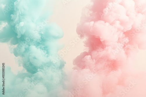 Naklejka premium Mint green and soft pink smoke rises vertically, forming spectacular columns...