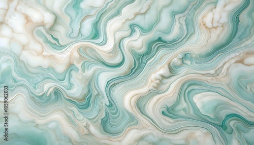 © Oxy Maru, Fototapeta premium Mint Green Marble with Cream Veins background,generative ai
