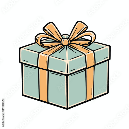 © codeblend, Obraz premium Mint Green Present with Brown Ribbon Vector