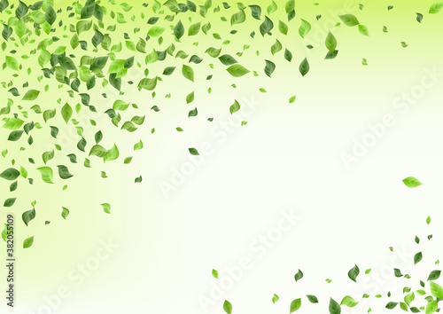 © Natallia, Fototapeta premium Mint Leaf Flying Green Background Brochure. Fly