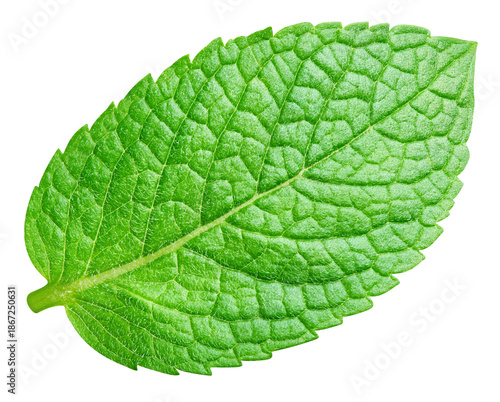 Obraz premium Mint leaves isolated on transparent. Mint PNG. Mint top view