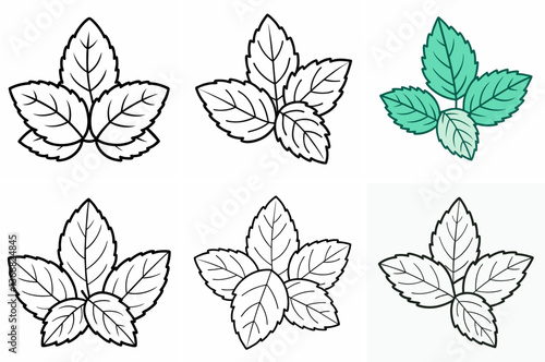 Fototapeta premium Mint Leaves Outline Coloring Book Page Line Art Drawing Set