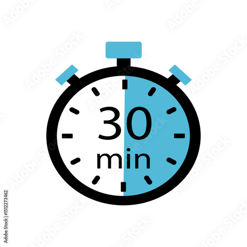 Fototapeta premium 30 Minute Timer Icon – Flat Stopwatch icon in Blue and Black