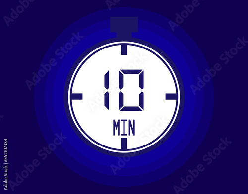 © BOROFOTOS, Obraz premium 10 minutes stopwatch vector icon. Stopwatch icon in clock style. Timer for schedules and appointments on blue background