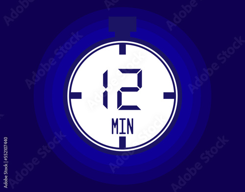 © BOROFOTOS, Obraz premium 12 minutes stopwatch vector icon. Stopwatch icon in clock style. Timer for schedules and appointments on blue background