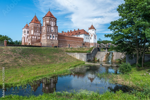 Fototapeta premium Mir Castle Complex in Belarus with waterfall (water mill) on river