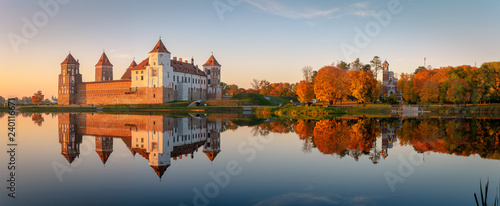 Fototapeta premium Mir castle in the sunsetlight. Belarus. Panorama