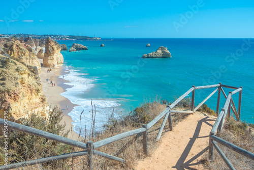 © ODIN Daniel, Naklejka premium Mirador de la Praia dos Três Castelos, plage public de la ville de Portimao, ville balnéaire du sud du Portugal en Algarve.