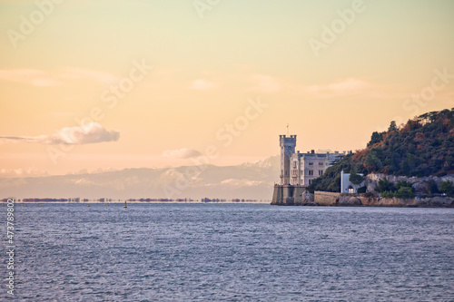 Naklejka premium Miramare castle on Trieste coastline sunset view