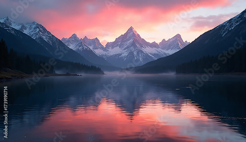 © wajid, Fototapeta premium Mirror Lake at Twilight