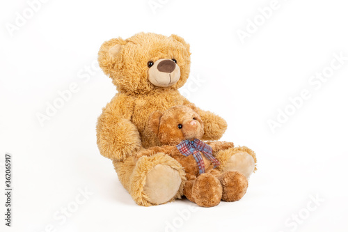 © jcfotografo, Fototapeta premium Miś z małym misiem na białym tle.