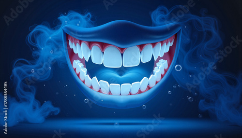 Naklejka premium Mischievous cartoon mouth grinning against deep blue mist, playful allure