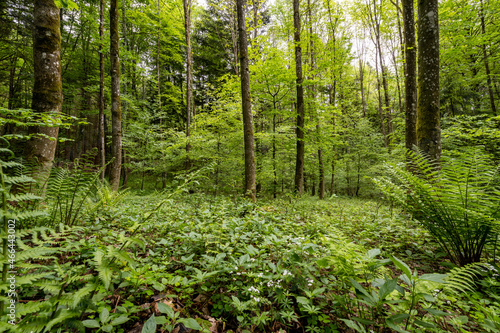 © Oliver, Fototapeta premium Mischwald Lichtung mit Farnen