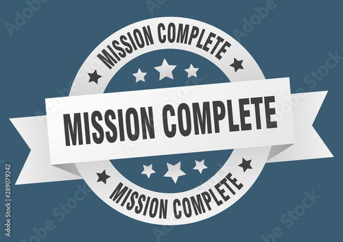 Obraz premium mission complete ribbon. mission complete round white sign. mission complete