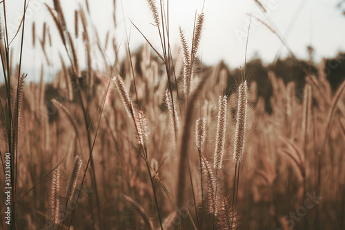 © ณัฐวุฒิ เงินสันเทียะ, Obraz premium Mission grass flower or Pennisetum pedicellatum grass meadow sunset in the garden