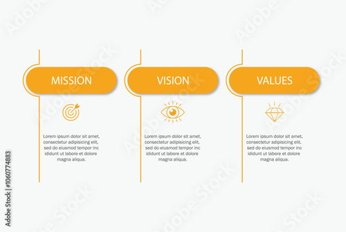 Fototapeta premium Mission, vision, values, graphic design template.eps 10 on white background, Can be used for presentation workflow layout, banner, process, diagram, flowchart, infographic, annual report.