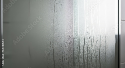 © antuanetto, Fototapeta premium Mist and condensation on bathroom mirror with soft lighting
