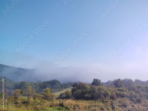Obraz premium Mist in the forest. Sunrays behind the trees. Slovakia