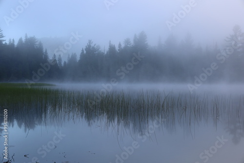 © Tho, Fototapeta premium Mist-shrouded lake in a forest
