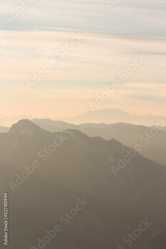 Fototapeta premium Mist Sunset in Alpine Mountains Photograph