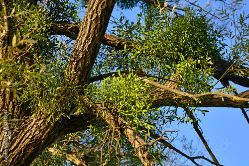 © dragoncello, Fototapeta premium Mistletoe growing on a tree in Kulen Vakuf village in the Una National Park. Una-Sana Canton, Federation of Bosnia and Herzegovina. Early September
