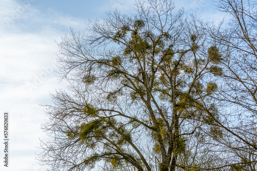 Fototapeta premium mistletoe in a tree against the blue sky